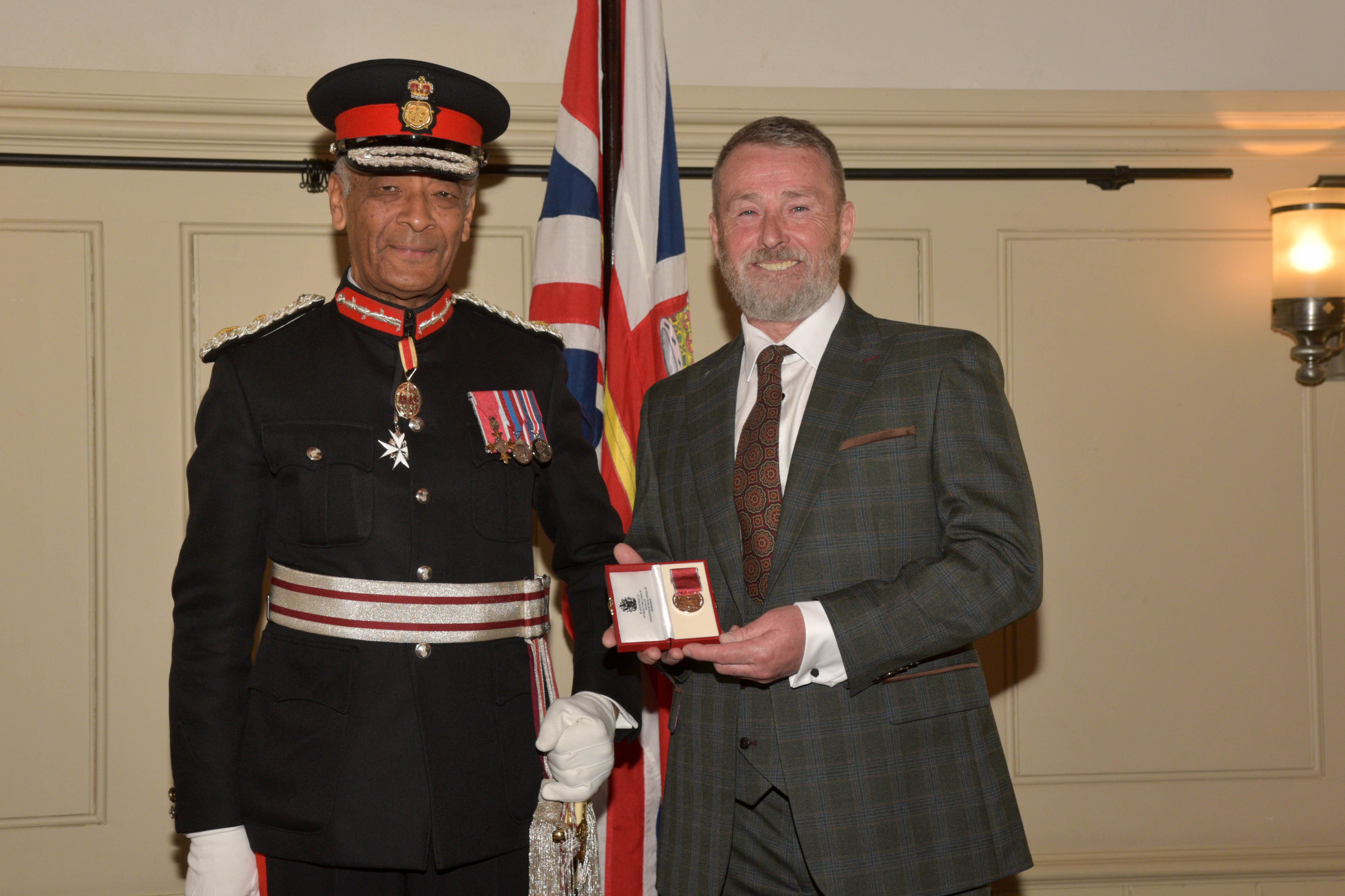 He received his award, while being accompied by his granddaughter Annie, from Sir Kenneth Olisa OBE, Lord-Lieutenant of Greater London and Constable General Sir Gordon Messenger, KCB DSO OBE DL, on behalf of His Majesty the King.
